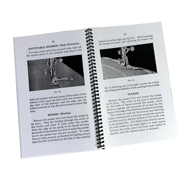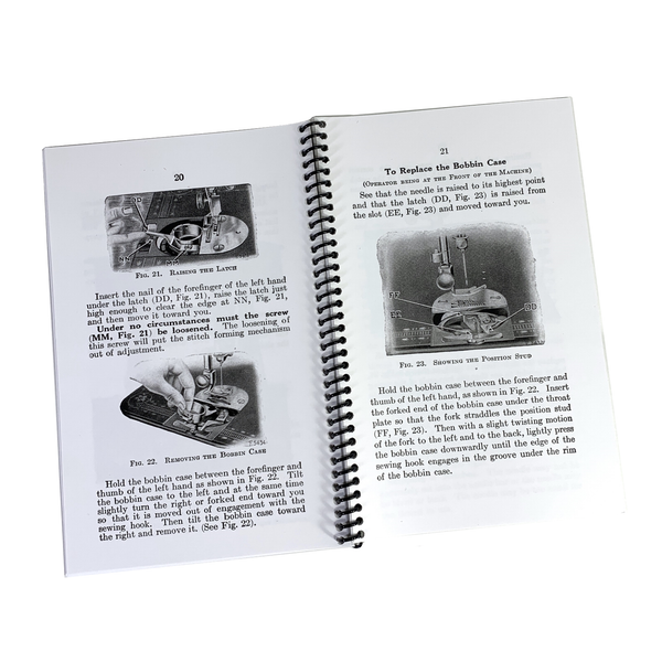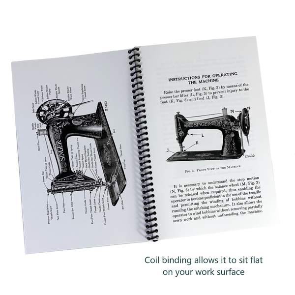 This is a new, high quality coil bound instruction manual for the early Singer model 66 'Red Eye' treadle sewing machine. This manual covers the use and general maintenance of your machine, it also includes instructions on using the basic attachments. Printed on high quality paper with clear text and illustrations, handy coil binding allows it to sit flat on your work surface. This is the larger format and measures approx 5.5" by 8", 40 pages. Original copyright 1928.